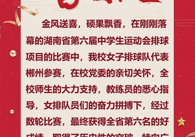近三年,学校荣获“全国生态文明教育示范学校”“全国青少年校园足球特色学校”“全国零犯罪学校”“中国科普联盟基地校”“湖南省文明校园”“湖南省生态文明校园”“郴州市文明校园”“湘南学院教育实习基地”,连续两年蝉联郴州市教育教学质量进步奖;高中教育教学质量稳步提升,初中教育教学质量呈井喷式发展,特长教育逐步形成特色。
