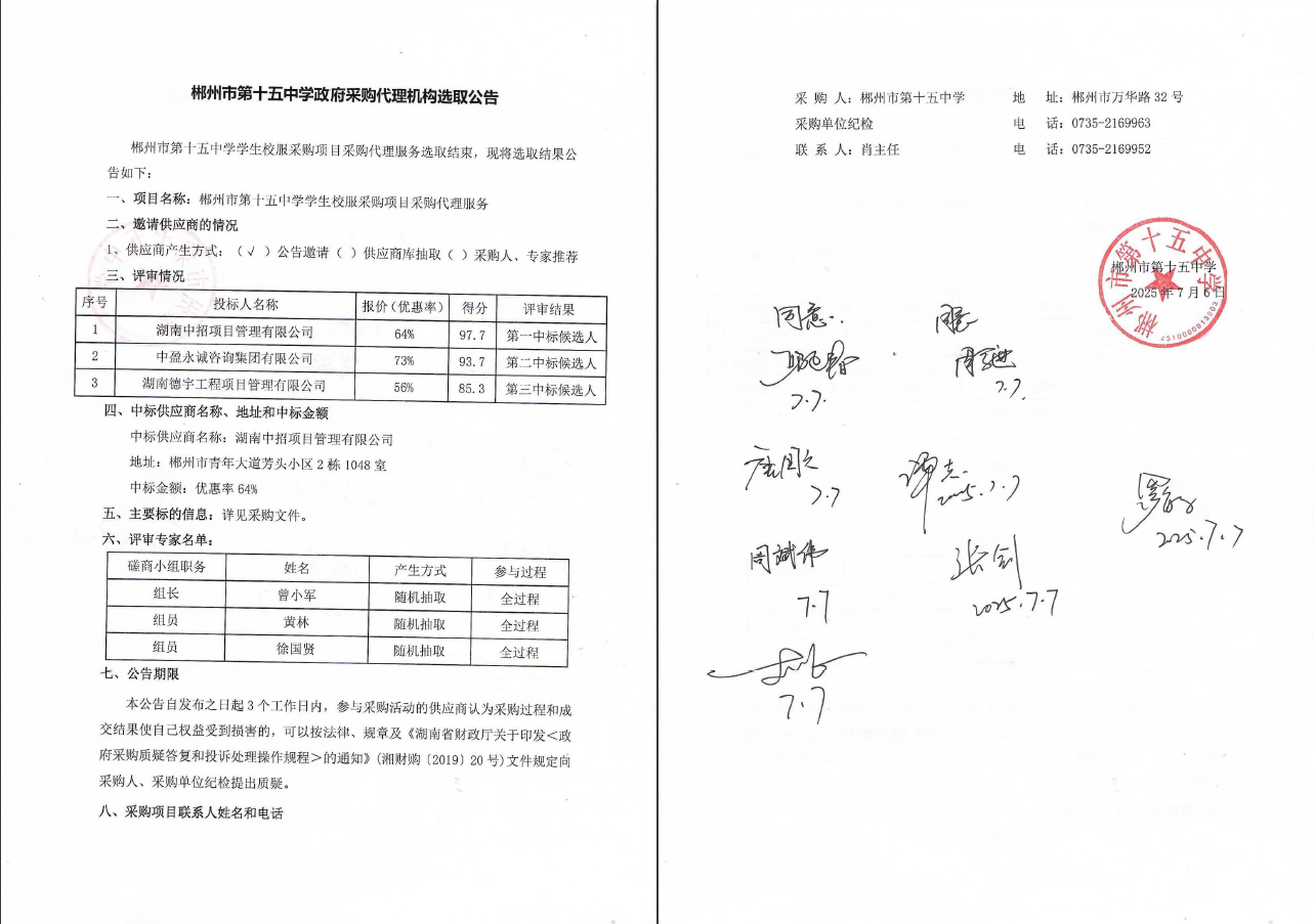 郴州市第十五中学食堂劳务外包项目采购竞争性磋商邀请公告